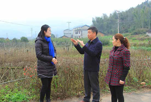 林善平代表(中)走訪回鄉(xiāng)的大學(xué)畢業(yè)生施穎( 左一),鼓勵她扎根山區(qū),為山區(qū)發(fā)展貢獻聰明才智。攝影/ 王爭