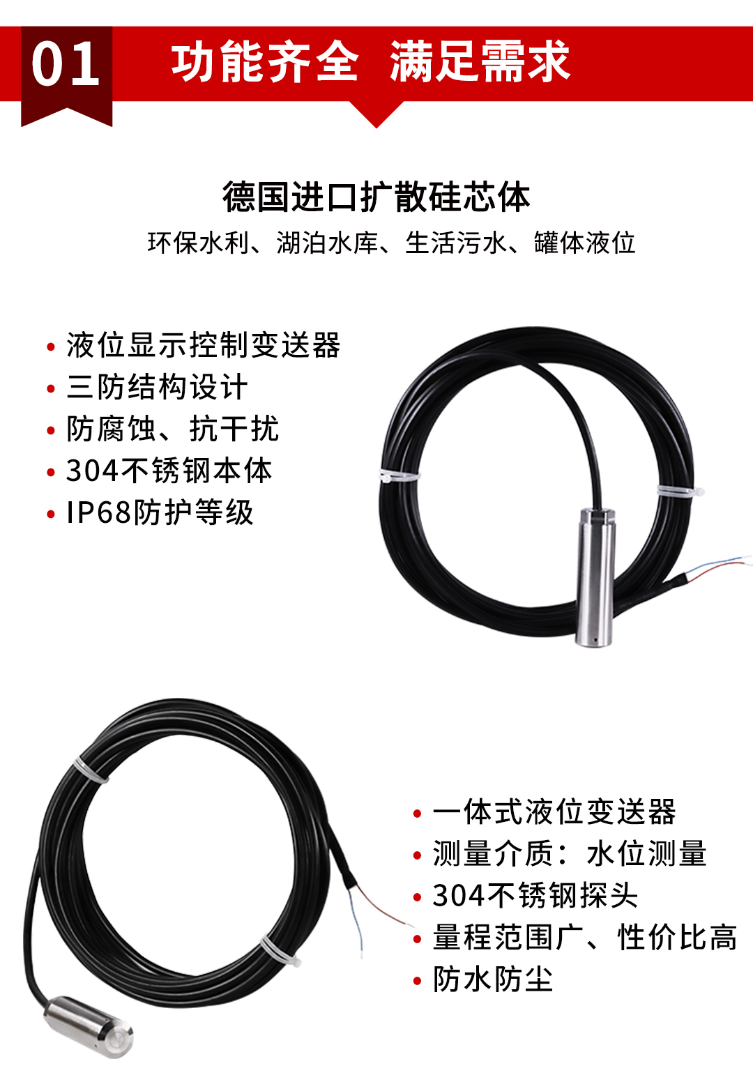 虹潤公司是專業(yè)生產(chǎn)液位變送器的國家專精特新“小巨人”企業(yè),生產(chǎn)的投入式液位變送器,具有采用進(jìn)口芯體,精準(zhǔn)測量,過壓保護(hù),高抗干擾,IP68防護(hù)等級等特點(diǎn)。產(chǎn)品獲得一種數(shù)字顯示低功耗壓力表、一種信號發(fā)生器裝置等2項(xiàng)國家發(fā)明專利,主持起草工業(yè)過程控制系統(tǒng)用模擬輸入兩位或多位輸出儀表、工業(yè)過程測量和控制系統(tǒng)用壓力/差壓變送器等2項(xiàng)國家標(biāo)準(zhǔn),通信系統(tǒng)多通道數(shù)據(jù)采集控制終端規(guī)范軍用標(biāo)準(zhǔn),以及現(xiàn)場設(shè)備集成等5項(xiàng)智能制造國家標(biāo)準(zhǔn)。參與國際5G標(biāo)準(zhǔn)制定,取得數(shù)顯壓力表等2項(xiàng)相關(guān)軟件著作權(quán)。產(chǎn)品廣泛應(yīng)用于電力、冶金、農(nóng)業(yè)、食品、制藥、水處理等對液位監(jiān)測需求的行業(yè)領(lǐng)域。